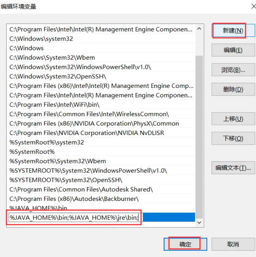 (win10系统)点击新疆粘贴%JAVA_HOME%\bin;%JAVA_HOME%\jre\bin;点击确定