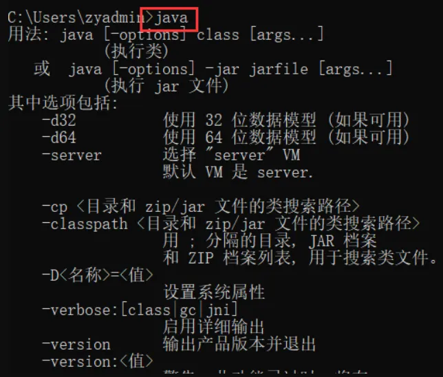 输入java -version如图所示
