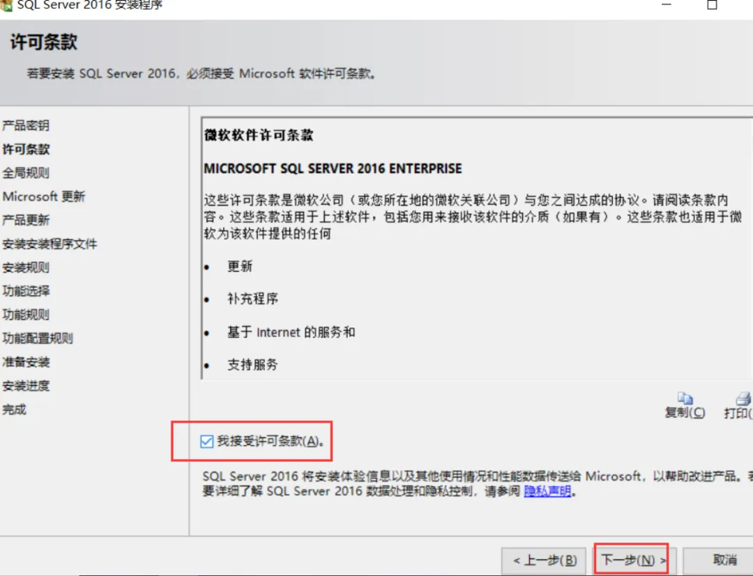 5.选择“我接受许可条款”。点击下一步