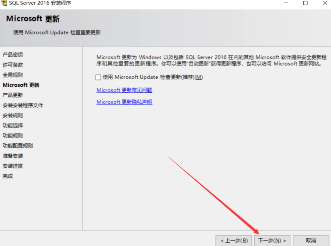 6.点击下一步(检查更新的勾可以不用勾选)
