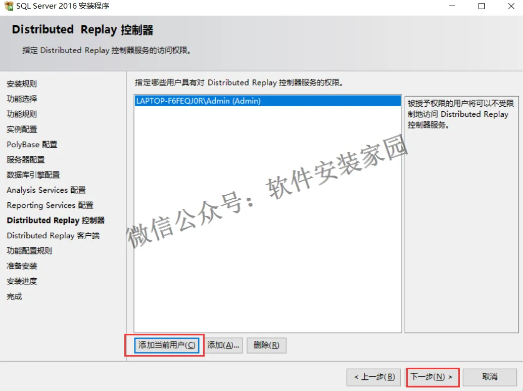 13.点击添加当前用户 点击下一步