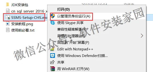 22.重启电脑之后,打开前面解压的软件安装包文件夹,选中SSMS-Setup-CHS鼠标右键 点击以管理员身份运行