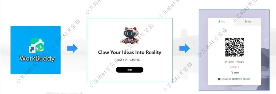 打开WorkBuddy 用微信扫码登录(最方便) 首次使用允许访问文件夹权限