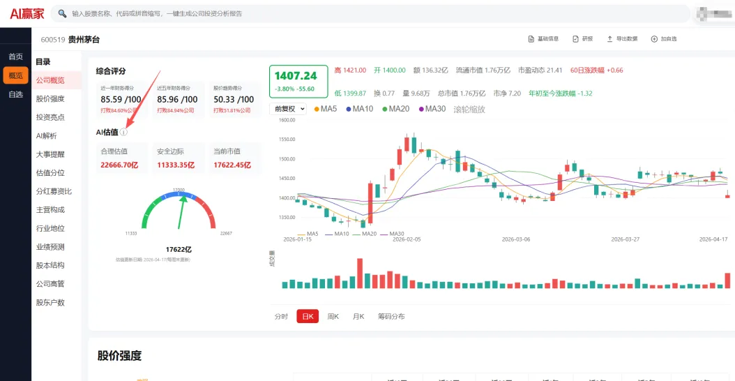 输入股票代码,自动算出财务数据 + 合理价位,估值高低一目了然,再也不盲目入场。