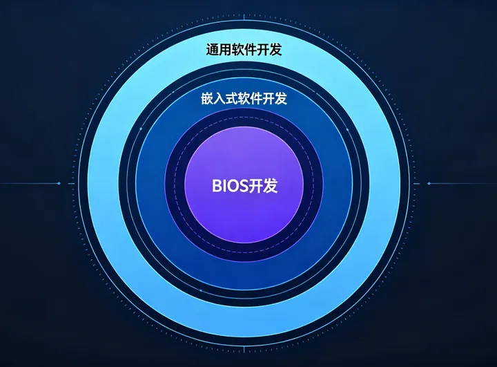 如果把整个软件开发产业比作一组层层嵌套的同心圆,最外层是边界清晰、样本海量的泛互联网应用开发,向内依次是标准化程度较高的企业级软件开发、场景多样的通用嵌入式软件开发,而越往内核走,领域的专业壁垒越高、硬件耦合度越强、通用样本越稀缺,位于同心圆最核心的圈层之一,便是我们深耕的 BIOS 与固件开发。