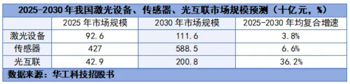 数据作证了这一点,2025-2030年,我国激光设备市场规模年复合增长率约3.6%,传感器年复合增长率为6.6%,这意味着未来或将是存量竞争。