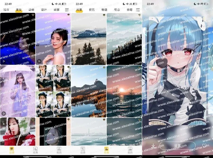 - 海量精选壁纸– 涵盖风景、动漫、游戏、艺术等数十种分类,满足各类用户的审美需求