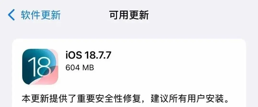 一句长话压轴,这个版本主要给不想上 iOS 26 的用户准备,覆盖还在 iOS 18 的机型,包含重要安全补丁,提升系统稳定性,减少潜在风险,苹果给出强烈建议,尽快安装,别拖延,尤其是常出门连公共网络的朋友