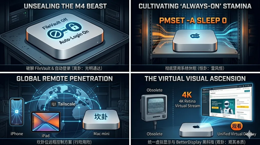 (本教程基于 SIMIAIOS 64 卦实战经验整理,转载请注明出处。)   The Ultimate Guide to Running a Headless Mac mini for AI agents