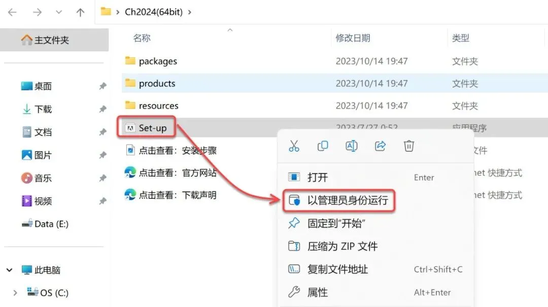 2.打开解压后的文件夹,鼠标右击【Setup】选择【以管理员身份运行】。