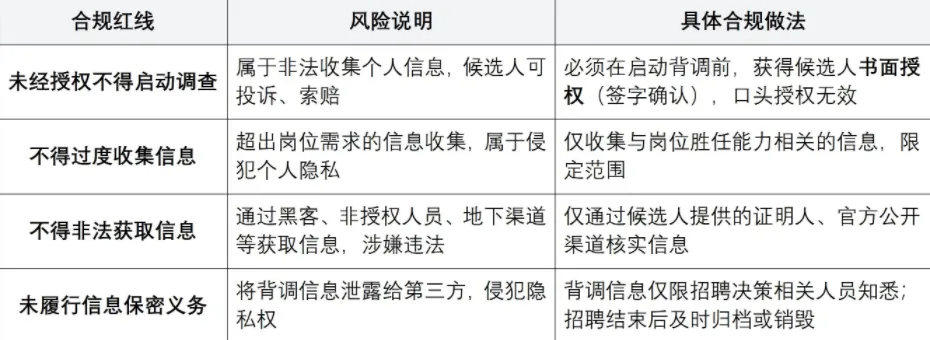 无论采用哪种背调方式,有一条底线绝对不能碰——合规。