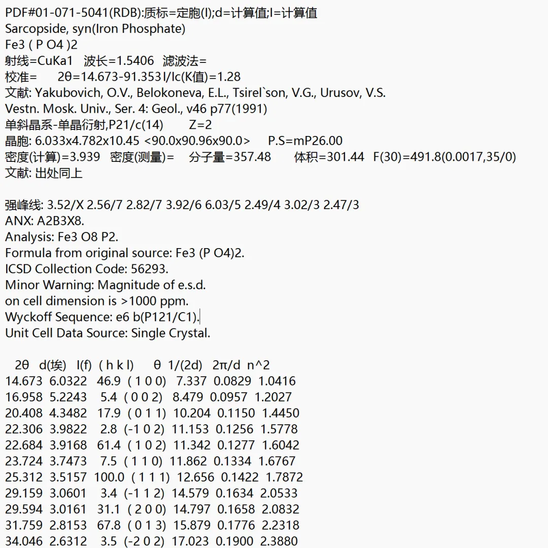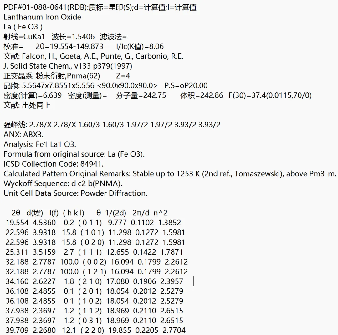 PDF#01-088-0641(RDB):质标=星印(S);d=计算值;I=计算值