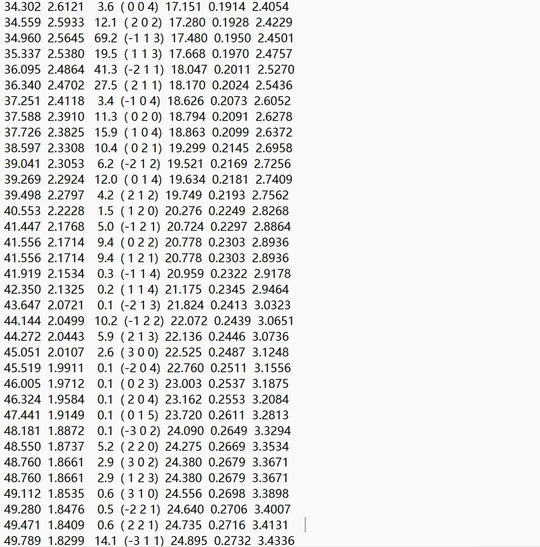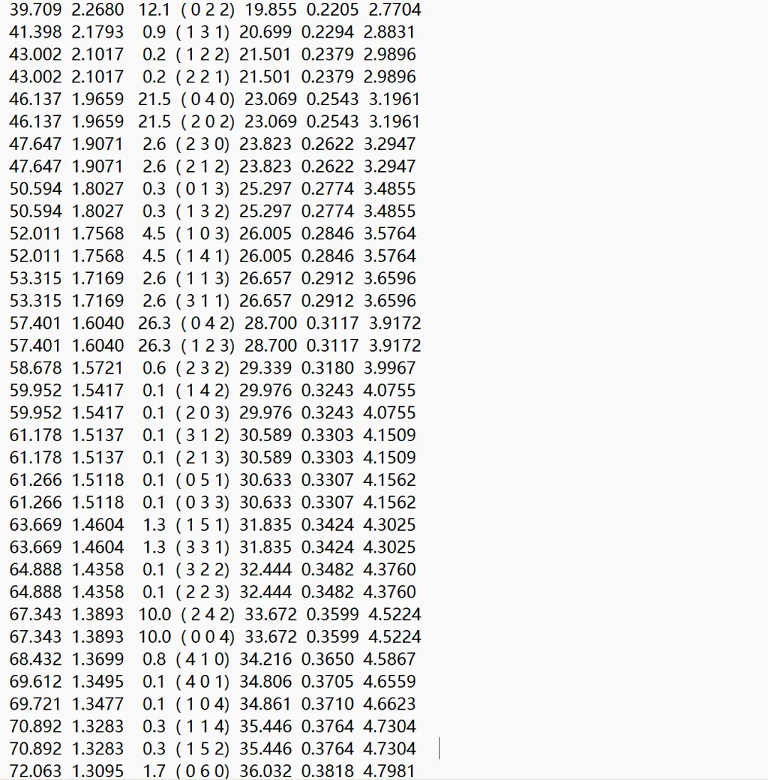 2θ d(埃) I(f) ( h k l) θ 1/(2d) 2π/d n^2