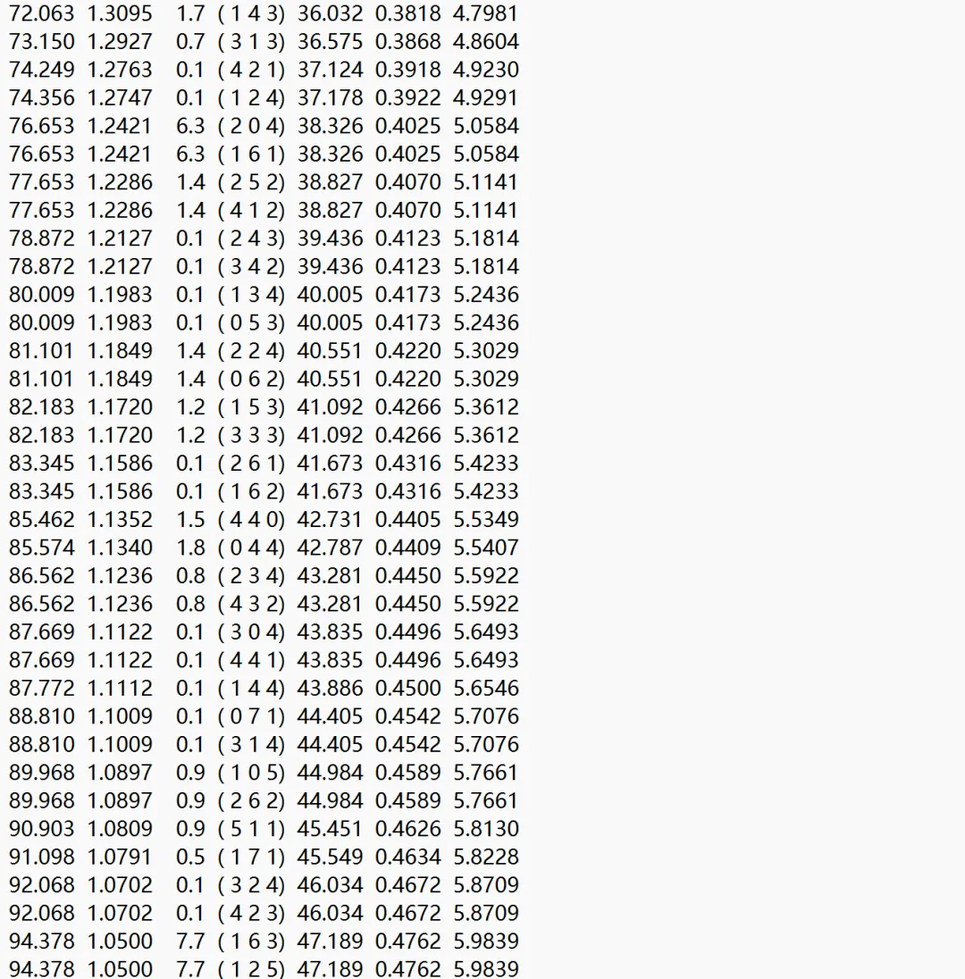 32.188 2.7787 100.0 ( 1 2 1) 16.094 0.1799 2.2612