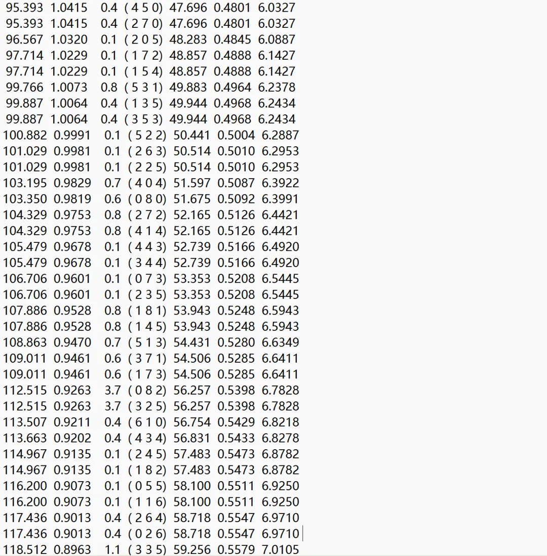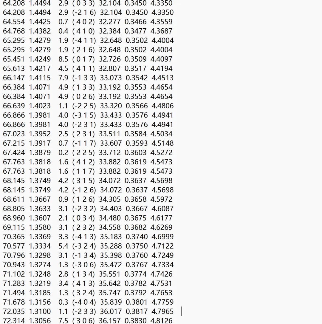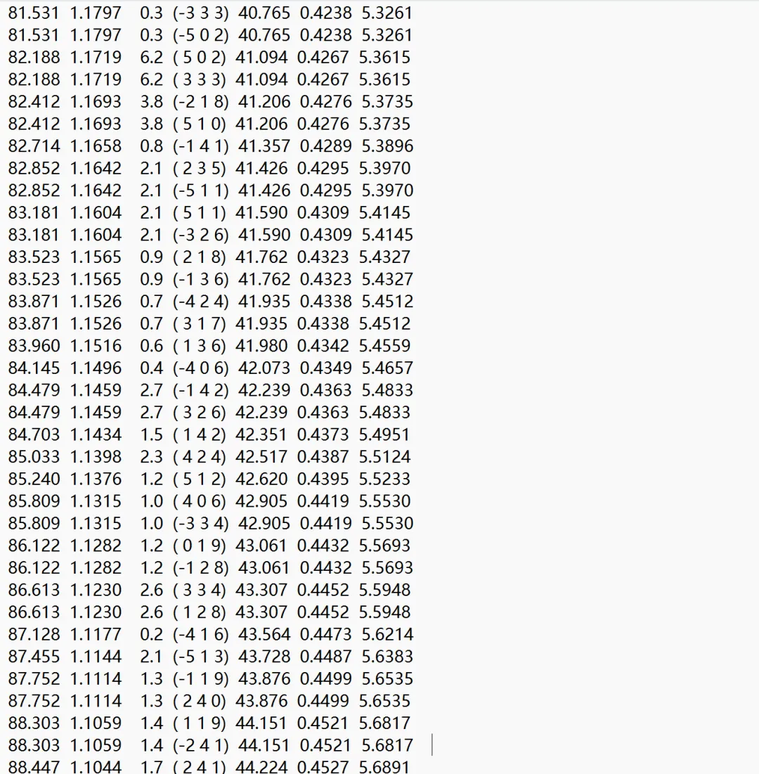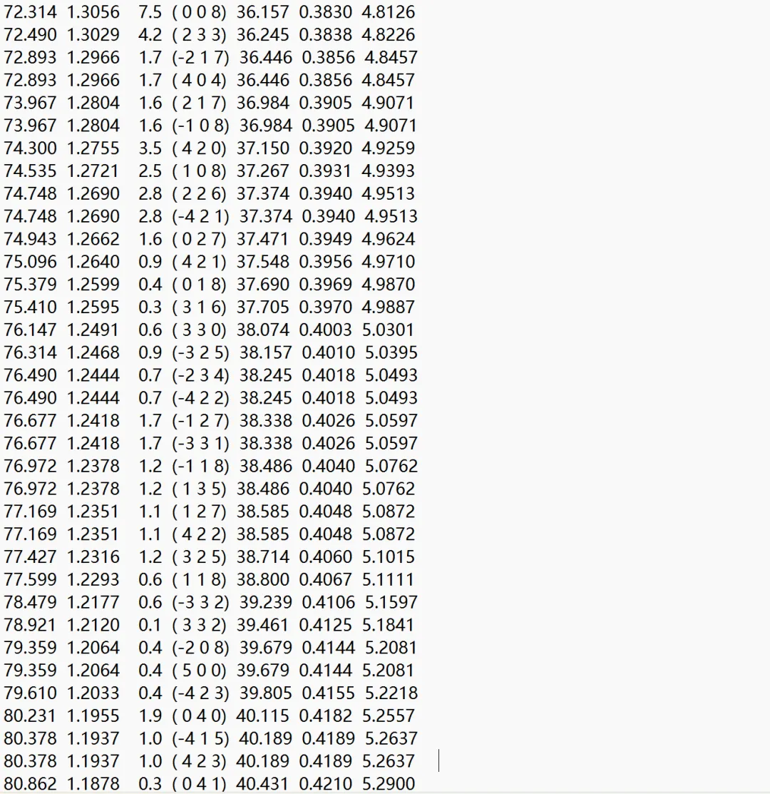 76.972 1.2378 1.2 (-1 1 8) 38.486 0.4040 5.0762