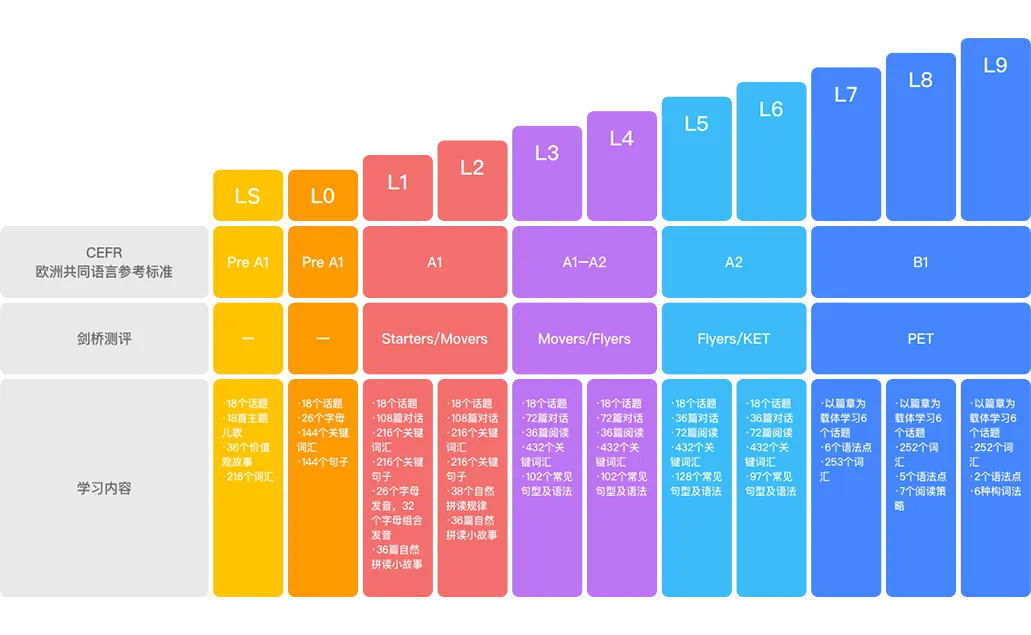 课程对标美标体系,分级清晰,从启蒙到初高中都有衔接。