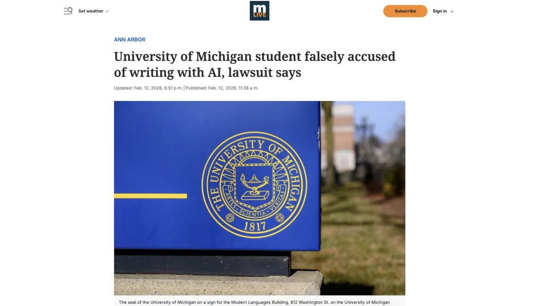 最近,University of Michigan摊上了一起争议案件:一名学生因写作过于规范,被误判使用AI,成绩直接被记为“无记录”。类似事件并非个例,随着AI检测工具广泛使用,越来越多留学生陷入“自证清白”的困境。在学术规范尚未统一的当下,AI不再只是工具,更成为一场关于公平、判断与教育边界的博弈。
