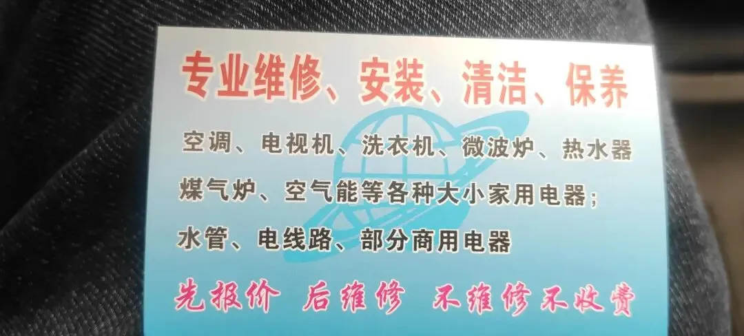 本公司是一家 专业安装 清洗 销售,电视,空调,洗衣机,热水器,空气能等家电业务的公司,水管,电线路也可以维修改造,价格实惠质量保证!店铺开业10年来客户覆盖整个富川所有乡镇,我们靠口碑来维护客户,价格实惠,质量保证是我们的底线!你们的满意是我们永远的追求!越野车拖车救援,联系热线:189****5804,另外,找一名人品端正,有耐心的员工,做事细心的学徒,月薪2600,试用期半个月,试用期期间按50元一天!