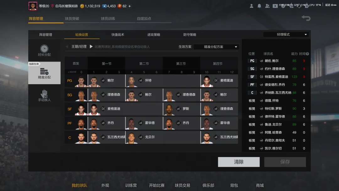 板子非常标准,泛用性很广,另外我也重新梳理了当前版本各种攻防板子,说得比较详细,可以收藏起来需要的时候直接抄:这套阵容轮换已经极致了,优化无非就是理查德森只打两节,让罗斯也打两节就行了,后面升级把边角料升满就完美了。其实大家可以发现,把这套阵容里的麦迪换成萨姆琼斯,罗斯换成波普,也就是同样究极标准的三分流,区别就是快船和篮网,其他基本一致。以上就是本篇攻略的全部内容,希望能为兄弟们提供一些参考。如果要抄作业,球员没必要完全按照本文购买,根据实际情况即可。如果用过感觉还不错,欢迎在评论区分享心得!
