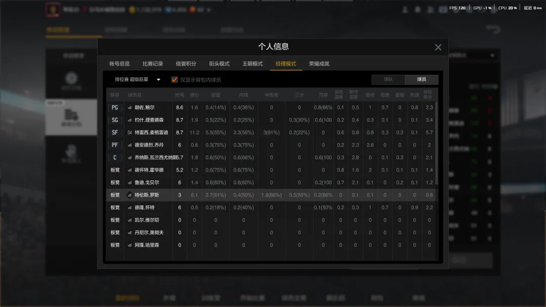 今天来一套究极标准的中投流阵容,除了麦迪以外,其他人加起来500万,化学反应很好,所以到超巨的胜率很高,不过也就上限超巨了,摸不到300星,中投流这么多年都没见过名人堂,要做好心理准备。这个模板4突麦迪也可以超巨,同样适配布克、德罗赞、科比、92乔丹,直接照抄即可。中投流也需要发牌员站定发牌,所以越听话越好,鲍尔和德隆怀特都满足要求,而且也有抢断。俩人加起来80万,虽然命中率不高,但能完成基本的发牌任务就够了。 射手+攻坚手 7麦迪+7小罗斯