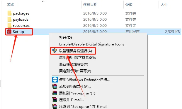 5.鼠标右击【Set-up】安装程序,选择【以管理员身份运行】。