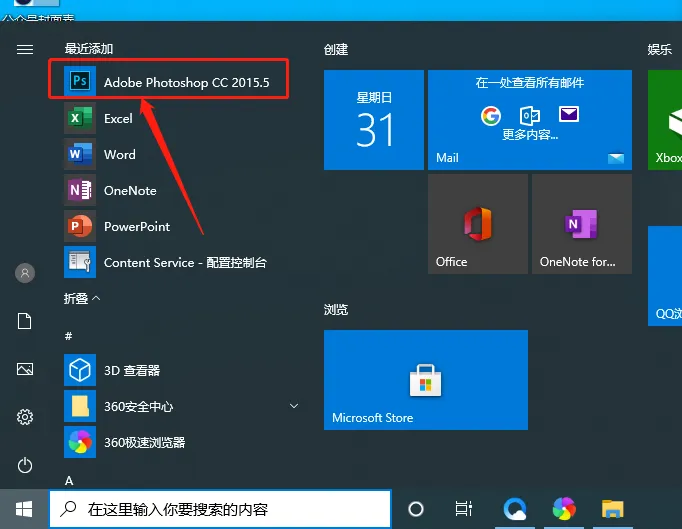 11.在桌面左下角的开始菜单栏中找到并打开ps cc2015.5软件。
