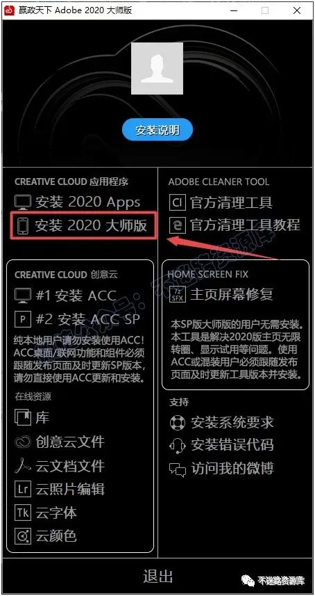 4.点击"安装 2020 大师版”