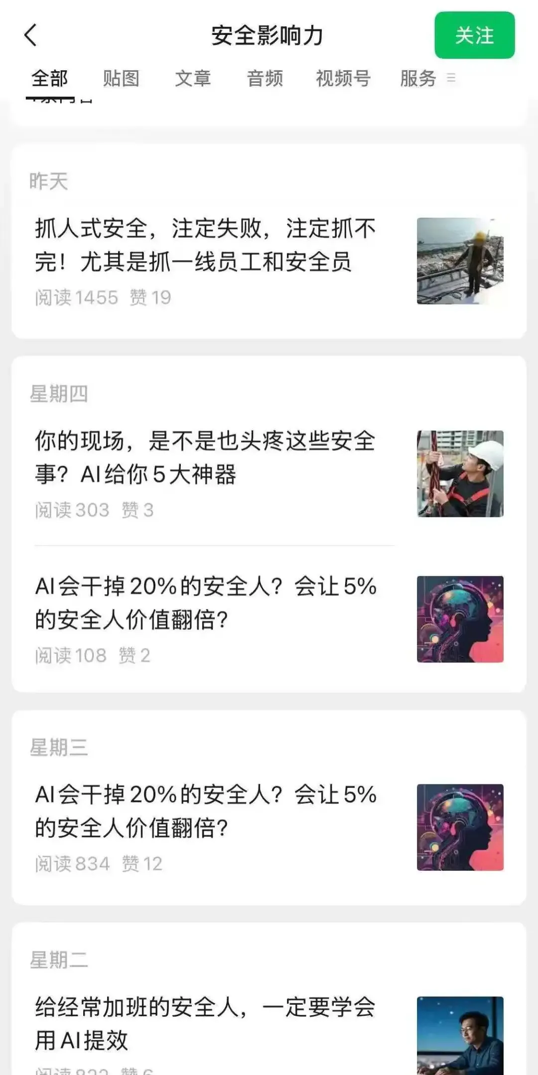 安全从业人员如何不被AI代替? 就在上一篇文章浅谈AI在安全行业中的应用发表后不久,我的一位粉丝告诉我:TA很迷茫,也很焦虑,问我出路在哪里。在为TA做了非正式的解答后,我认为仍有很多内容、细节需要补充,因此写下这篇文章。 事实上,我并不惊讶于安全从业人员对AI将来代替自己岗位的担忧。前一段时间,我打开了曾经深度参与其中的公众号“安全影响力”,令我没想到的是,曹老师的公众号文章现在也大量充斥着有关AI的内容(如上图所示)!你以为“安全影响力”和“EHS Weekly”仅仅是个例吗?你不妨现在打开你关注的安全类公众号看看呢。因此,很多人的焦虑不得不说,和自媒体的“贩卖焦虑”密不可分。 嘿嘿,顺便我也打个广告。我很推荐大家在阅读下文前提前阅读我的文章安全行业现状——就业、薪酬与实际工作。实际上该文章能够让你打消很多疑虑,也能够对你现在所从事的工作有一个准确的定位——而这二者,都在塑造你的定力。事实上,你的疑虑来源于你自己无法解释你观察到的现实,而我能;再者,毕竟坑有千千万,总有一款适合你,而你不能指望我指引你规避所有的坑! 说起AI,你最先联想到什么?对于我来说,永远不会是上一篇文章中的编程代码,而是电影《终结者》系列以及2024年上架的一款游戏——《终结者:黑暗命运-反抗》。不仅如此,我强烈推荐每一位读者在休息时间看完这系列的电影、通关这款游戏的剧情。事实上,我认为虽然同为2024年发行的游戏,但《终结者:黑暗命运-反抗》(以下简称《反抗》)相比《黑神话:悟空》要具有现实意义得多,毕竟你不能把孙悟空的神通广大带到现实中你自身来,可AI正在真实地和你抢饭碗,你可以理解为它已经对你宣战,而你不得不和它打一场残酷的“饭碗保卫战”。 尤其是游戏《终结者:黑暗命运-反抗》,每一方阵营都有各具特色但强大的战争机器(例如主战坦克),不过也有脆弱无比但不可或缺的后勤补给体系(例如弹药补给车和油罐车)。令我震惊的是,游戏中的AI阵营,无论是战略规划还是战术布局层面,永远紧盯人类幸存者中的“脆弱环节”:战术上重点打击后勤补给、远程火炮等低防护、高价值目标;战略上以精准、冷峻的计算制定目标优先级,并一以贯之地搜索、斩杀人类幸存者中的关键节点(例如高级指挥、黑客部队)。但是真正令人不寒而栗的是,AI对人性弱点的精准把控——以下一段话来自其DLC《we are legion》中AI对人类的评价:人类各派系联合成功的可能性:极低。记录表明,人类无法实现大规模合作。他们不是AI;他们无法合为一体;他们不够强大。 但是,在游戏中人类并非毫无胜算。因为在游戏架空世界背景中,AI控制了世界上绝大多数的工业设施,相对来说人类幸存者装备补充速度接近于停滞,更何况幸存者还要考虑人力补充速度;所以,幸存者根本不可能通过一个接一个战术性的胜利来赢得战争,而是以一次次类似于游戏中黑客小队通过技术方式关闭一个大型机器人生产线的方式来赢得战争。 可能你会疑惑:不是讲安全吗,怎么聊游戏呢?怎么一个安全同行,不看注安看上兵法了?游戏内容都是虚构的,你当真不是傻吗?如果你有这样的疑惑,那就说明你是一个“脱产”的从业者,就如同早先我在安全从业人员的职业规划中所说的,你是一个“外行”。事实上,真正具备安全工作经验的人,能够明显得感觉到我在“指桑骂槐”,也能清晰地感觉到自己是那个人类幸存者而不是AI。只是唯一的区别在于,现实中的AI并没有自我意识,但使用AI背后的人有啊。抛去这唯一的区别不说,事实上游戏中的内容与真实的你一一对应:你的软肋/“脆弱环节”就是你的房贷、你孩子的学费或正在积蓄的彩礼;你的关键节点就是出了事你有可能锒铛入狱;即便你被判罚得很轻,你认为银行会以自己承受一年0还款的代价来宽限你坐牢的这一年时间吗?你认为有女孩会通情达理地听你解释坐牢的原因并将往后余生交给一个有案底的人吗?所以到头来,你觉得你有“赢面”吗?正如我早先在文章从《核灾日月》看福岛核事故:为什么你得到的信息全是咀嚼后的残渣?中所说:游戏虽然在内容真实性方面良莠不齐,但是游戏是讲逻辑的,仅这一点就比应试教育中所使用的课本强上不少。而一款游戏就能告诉你,你的人生比你想象中脆弱。 有了上面的不怎么令人愉快但很必要的铺垫,事实上我们能够很清晰地看到AI可能的使用场景,尤其是对你不利的场景。但真实情况更为残酷,可能在AI尚未普及前,你就已经暴露了你的弱点:比如你在填写面试表的时候填写了你已婚且有房贷,又比如你在和同事相处的时候表现出的胆小怕事得以让上司或平级同事PUA你、践踏你的尊严而你甚至都不知道怎么搜集证据。而自从普及了AI,你的弱点只会更精准、全面地暴露在他人眼中——这么看来,上文中AI对人类的评价至少在各位所处的环境中是精确且中肯的。 但并非没有出路。目前来说,AI的最佳用途是什么?看看《终结者》系列电影就知道了:它最大的用处就像“州长”所饰演的“终结者”机器人一样,虽然不能让你大富大贵,但是可以保护你。不妨你现在就把公司的员工手册、规章制度以及你的劳动合同丢给AI,让AI来告诉你潜在的法律风险;抑或是当你和同事或上司发生因为工作问题产生冲突时,让AI协助你找到对方的逻辑漏洞并有理有据地驳斥对方