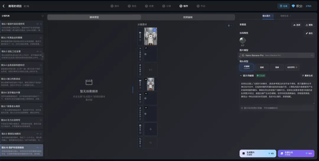 有了剧本和角色素材,接下来要把每一集拆成具体镜头。这一步是纯 LLM 任务,但提示词工程非常讲究。