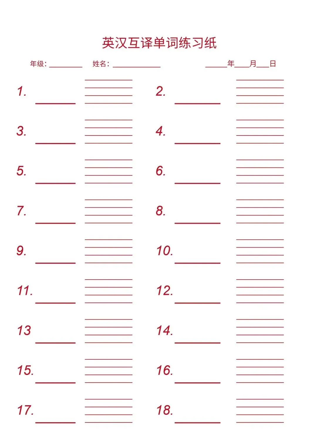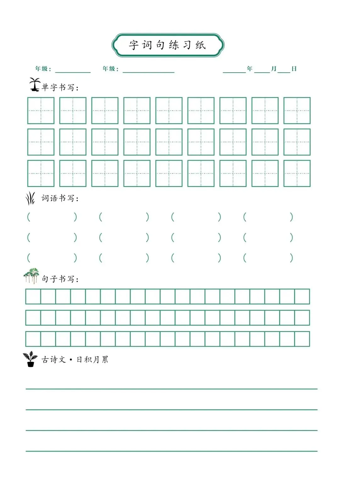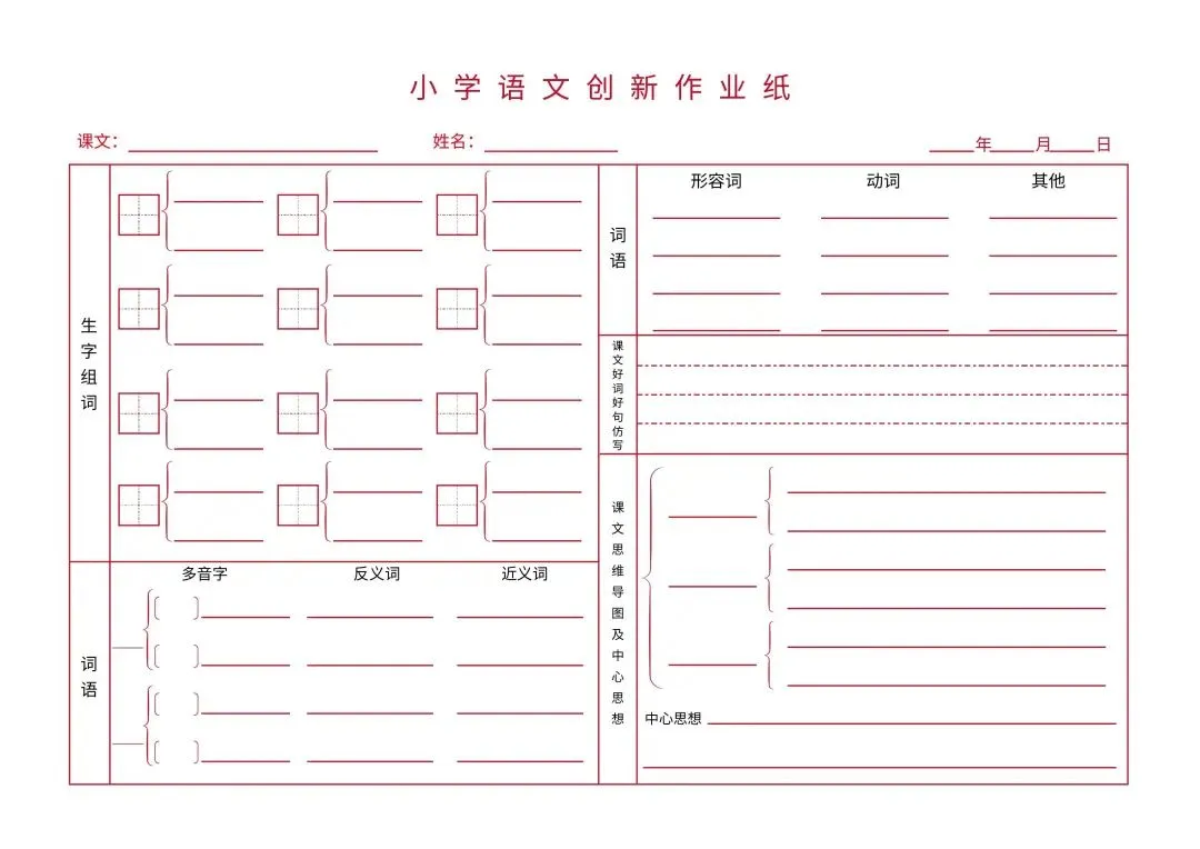 成语积累本 / 错题集红 / 线米字格 认字练习生 / 字笔画顺字 生字练习四 / 线虚实田 / 字格虚实 小学语文创新作业纸虚 / 线小网格 英汉互泽练习纸 / 直排双栏 字词句练习纸 / 作文纸带字数统计