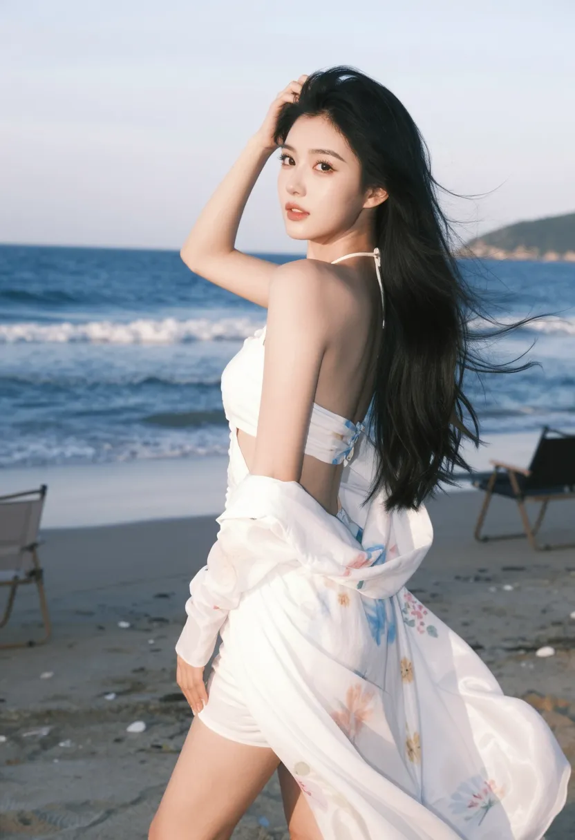 这个场景展现了8K超高清,极致细节,杰作,最佳画质,私密摄影,海边回眸艺术风格,亚洲女性在海边回眸,穿着优雅白色花...画面构图精妙,光影运用恰到好处,充分展现了主角的魅力与气质。无论是服装细节还是环境氛围,都经过了精心的设计与布置。