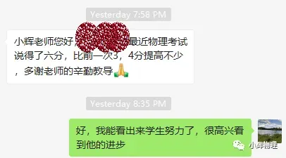 学生上了小辉物理课程,对物理兴趣增强,成绩明显提高,这是最近G11班级中的其中一个学生的反馈