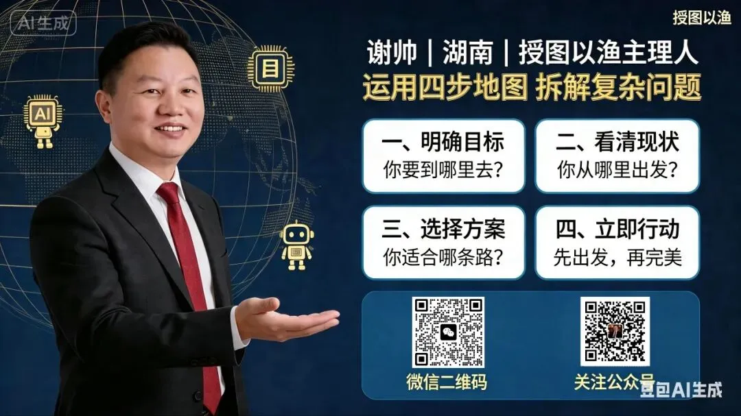 我是谢帅,授图以渔主理人。复杂问题就像自驾游,拆成四步就能找到方向。