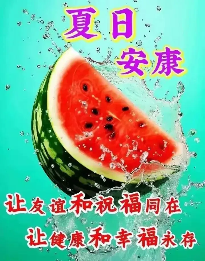 🍑早上朝霞满天,祝你平安伴身边;中午烈日炎炎,祝你幸运一整天;晚上日落西山,祝你快乐在心间!🎉🥝🌸