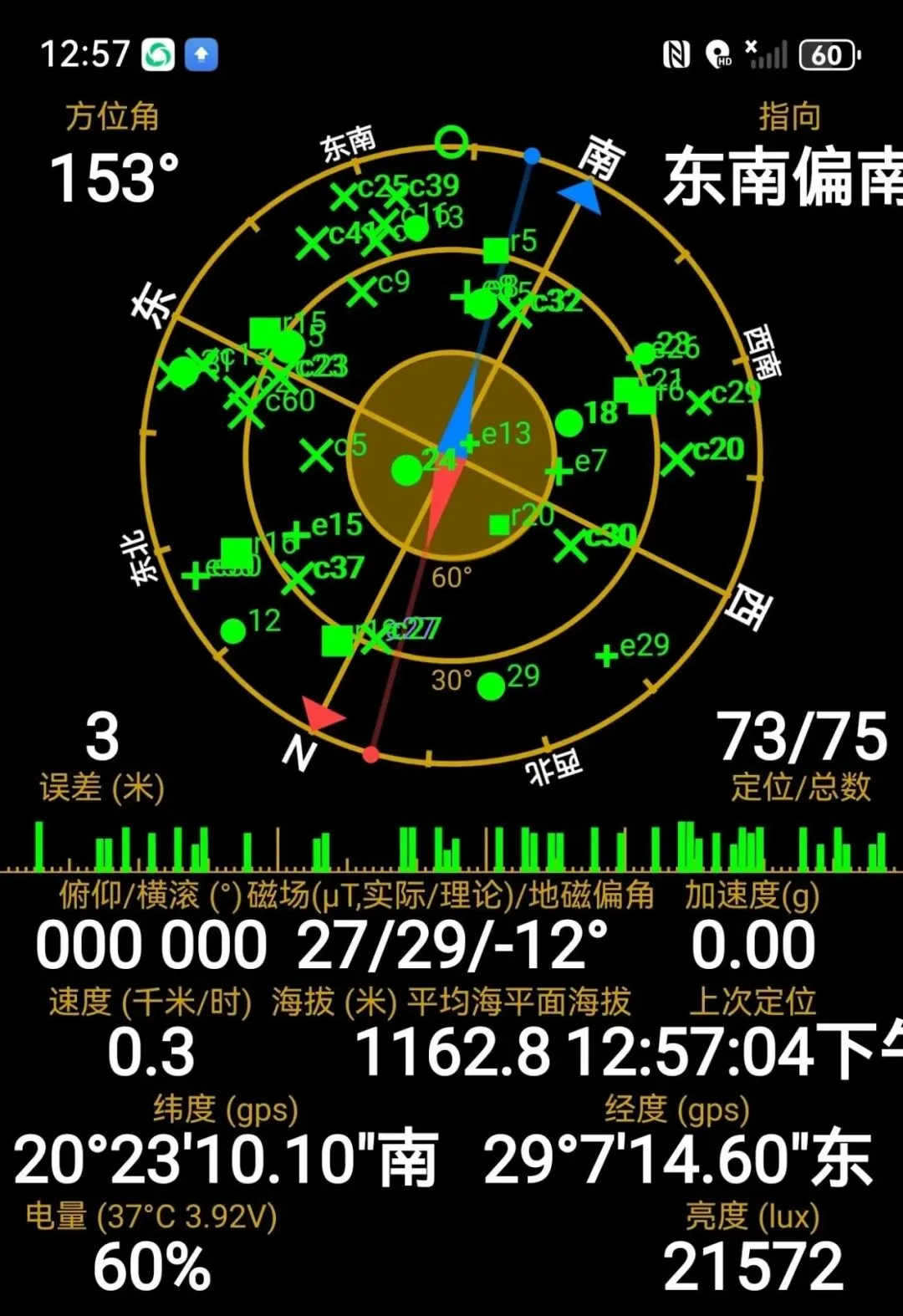哦,重要的点:第一张图的定位坐标是津巴布韦布拉瓦约(纬度20°23'S,经度29°07'E,布拉瓦约的坐标大约是20.17°S,28.58°E,接近),所以图片1是该地区的定位截图,显示了当地的方位、海拔(1162.8米)、定位精度(误差3米,定位/总数73/75)等,说明该地区是实地勘查的定位点。