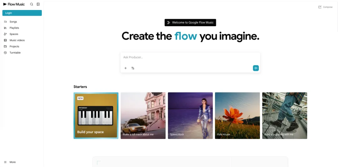 打开 Flow Music 的网页 flowmusic.app,你会看到一个类似聊天框的输入区。