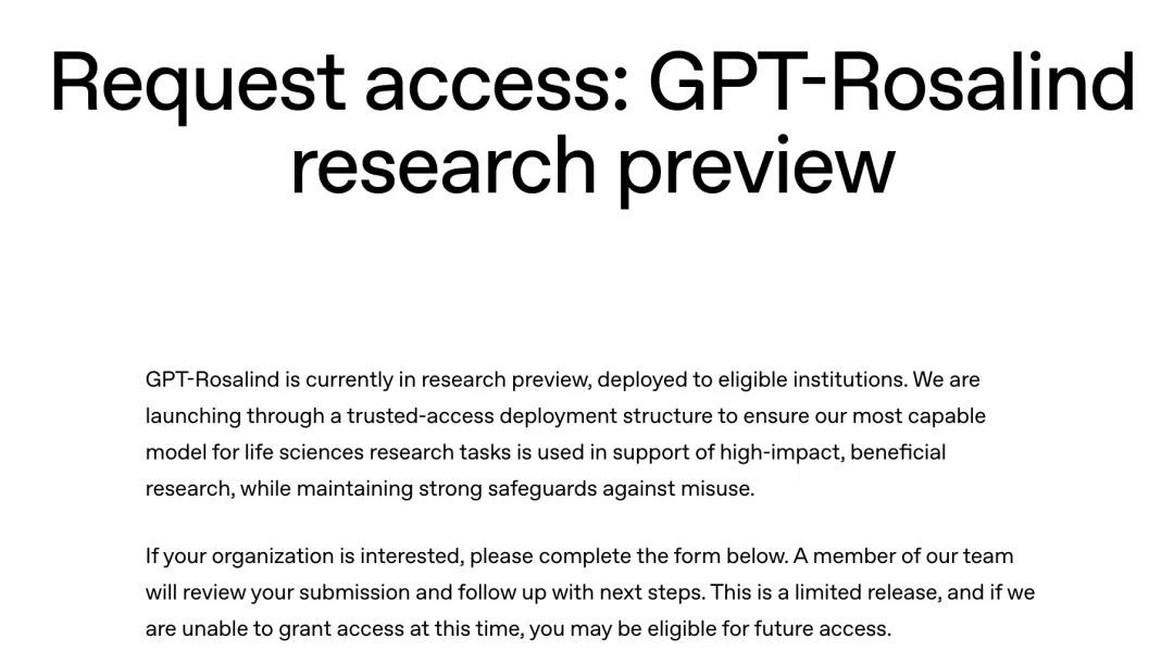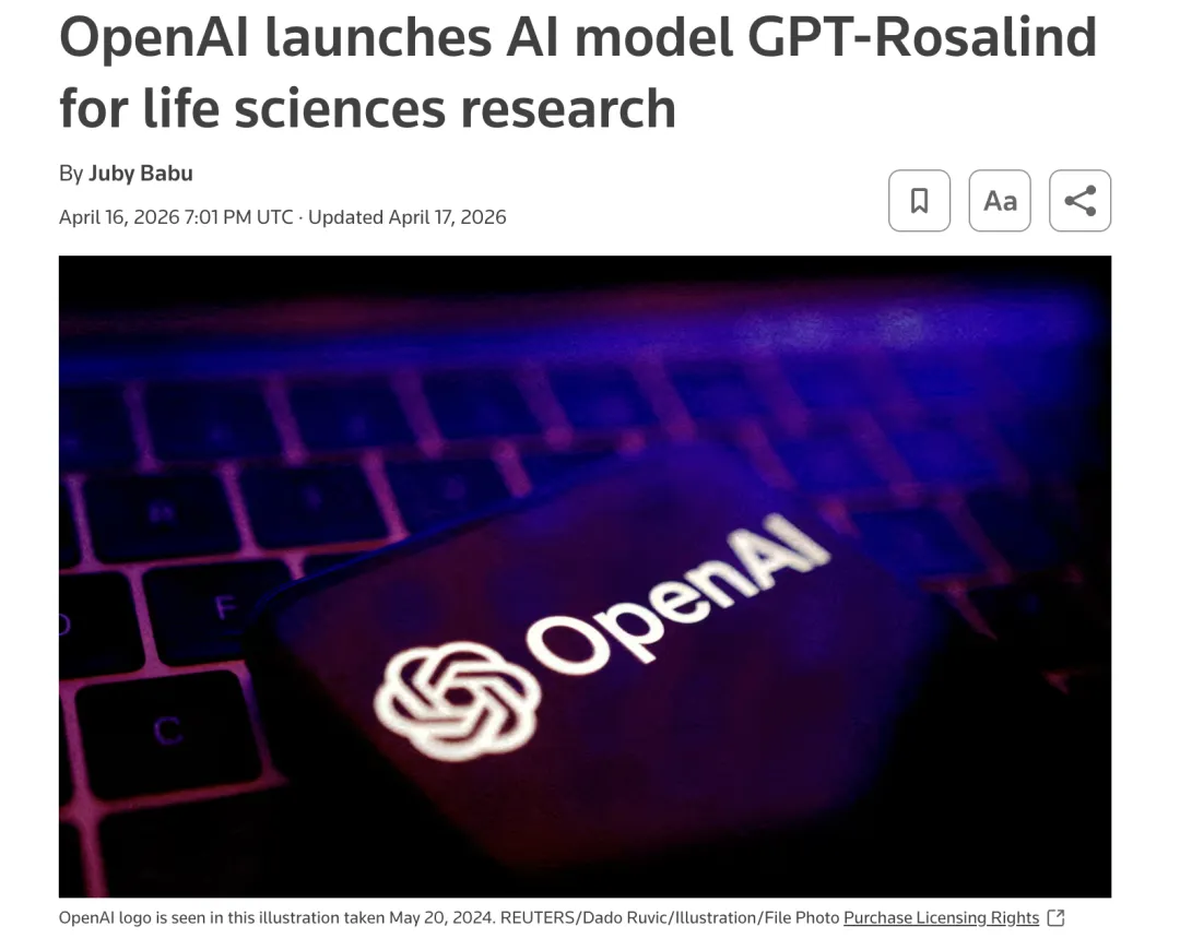 也正因为如此,OpenAI这次推出GPT-Rosalind,真正值得行业认真看的,不是又来一个更强的大模型,而是它试图切入药物研发中最贵、最核心、也最依赖高级人才经验的那一步:从文献、数据库、组学、实验结果到下一轮假设、实验规划和资源配置之间的那条认知链。OpenAI将GPT-Rosalind定义为面向生物学、药物发现和转化医学的专用推理模型,当前以research preview方式通过trusted access向合格客户开放,并配套推出可连接50多个科学工具和数据源的Life Sciences research plugin。