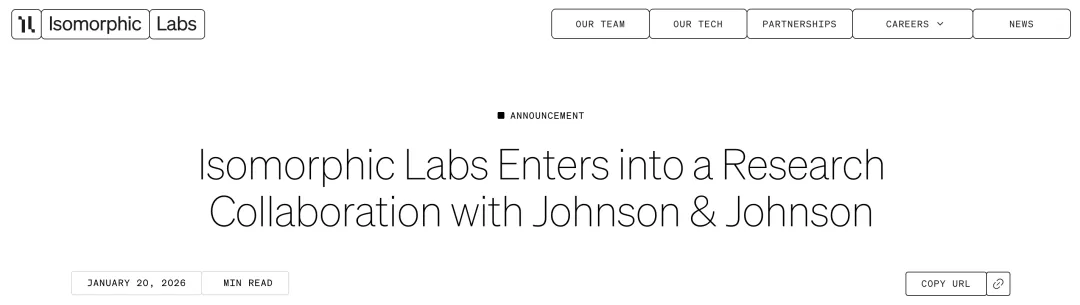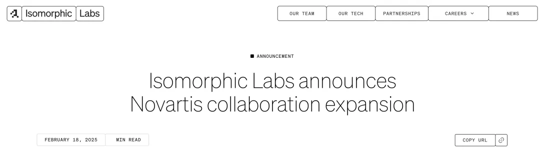 第二层,是底层设计引擎。代表是 Isomorphic Labs。它的核心不是做通用科研助手,而是做更底层的药物设计engine,试图把分子相互作用理解、结构推理和多模态设计统一到一个更强的设计框架里。过去两年,Isomorphic持续扩展与Novartis的合作,2026年又与Johnson & Johnson建立跨模态、多靶点合作,覆盖小分子、抗体、肽和分子胶。