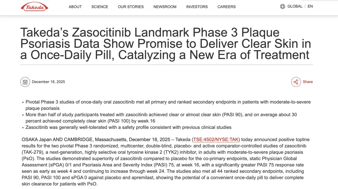 第四层,是嵌入研发流程的基础工具链。代表是 Schrödinger。这类公司最容易被忽视,但反而最不容易被轻易替代。Takeda的zasocitinib关键III期阳性结果,再次提醒行业:真正抗波动的,未必是最会讲“自动发现新药”的公司,而可能是那些已经嵌进药企真实流程里的基础设施型工具平台。