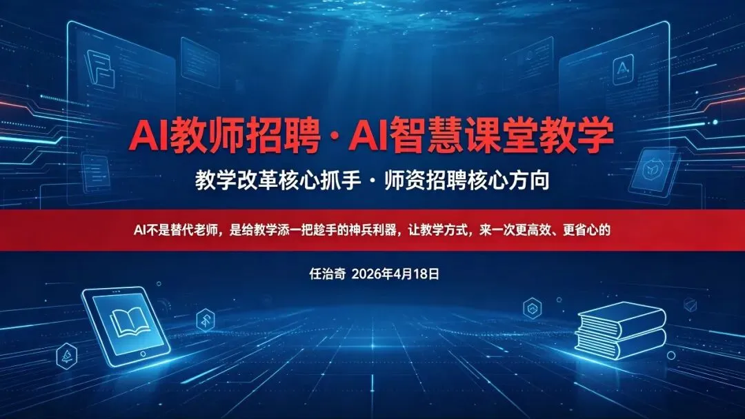 我们今天招AI教师,不是招一个上课的工具人,是招跟我们一起闯这条路的志同道合的伙伴。如果你年轻、有冲劲、愿意接受新事物、想在教育这条路上干出点成绩,那我们欢迎你,跟我们一起,把AI教学这件事,干得漂漂亮亮的!(任治奇校长2026年4月18日关于AI教师招聘与AI智慧课堂教学的谈话)