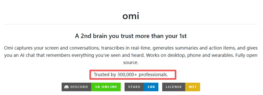 今天介绍一个实用的开源Omi帮你解决这个难题。它在GitHub上已拿下11000星,并且是一个已经商业化的产品,用户已超过30万。