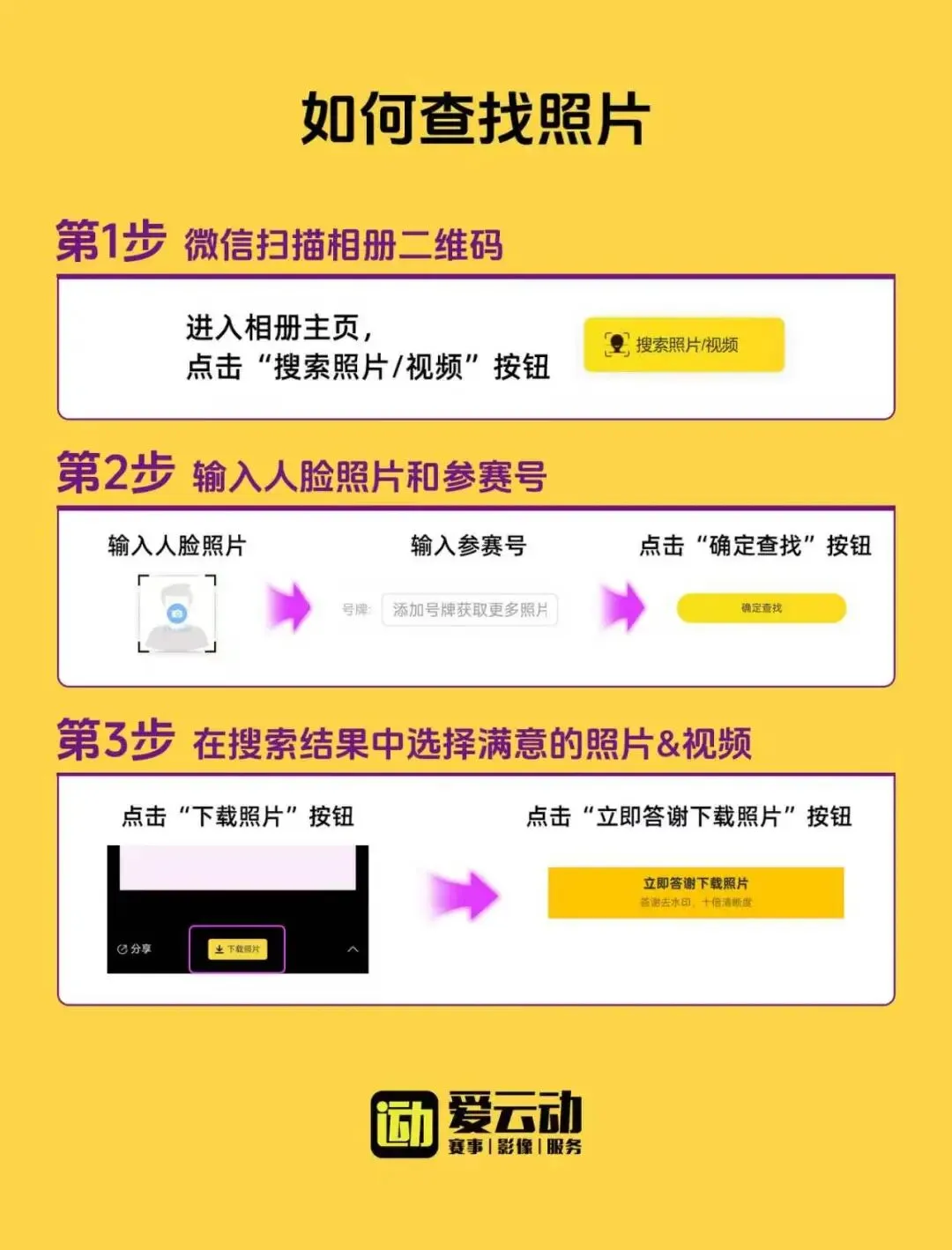 赛事结束后,您可以按照以下 3 步,轻松找到并保存自己的赛道大片!
