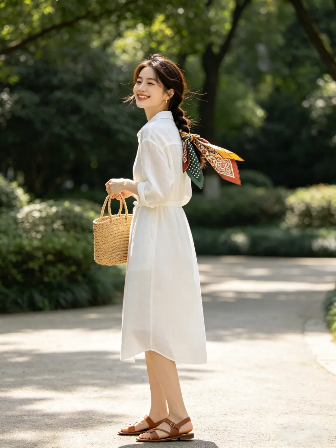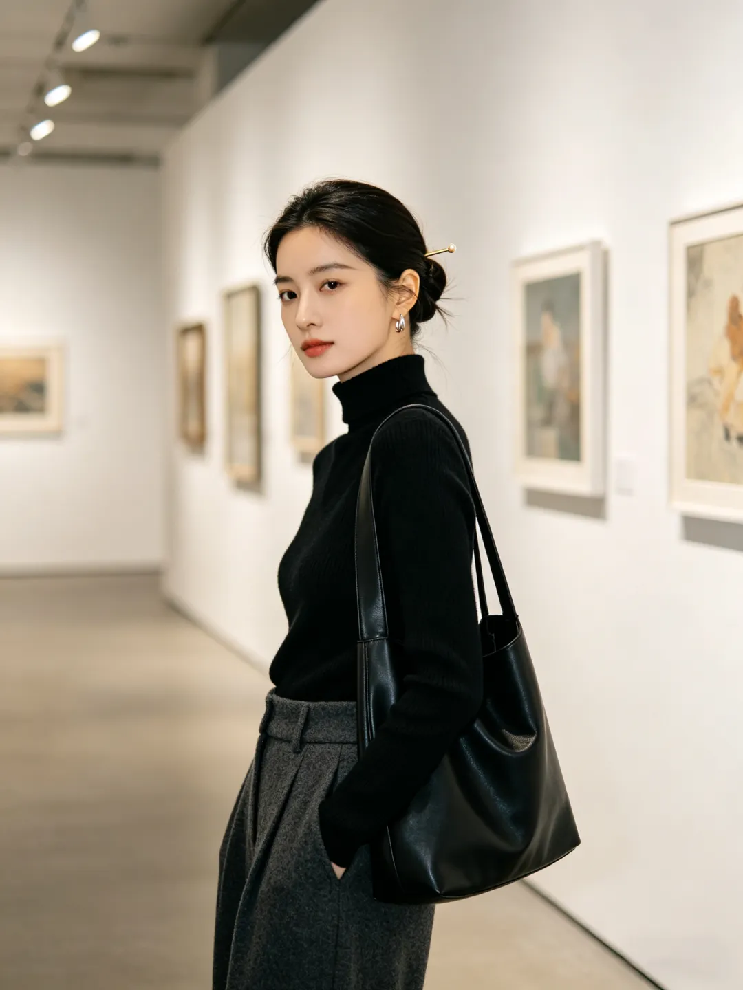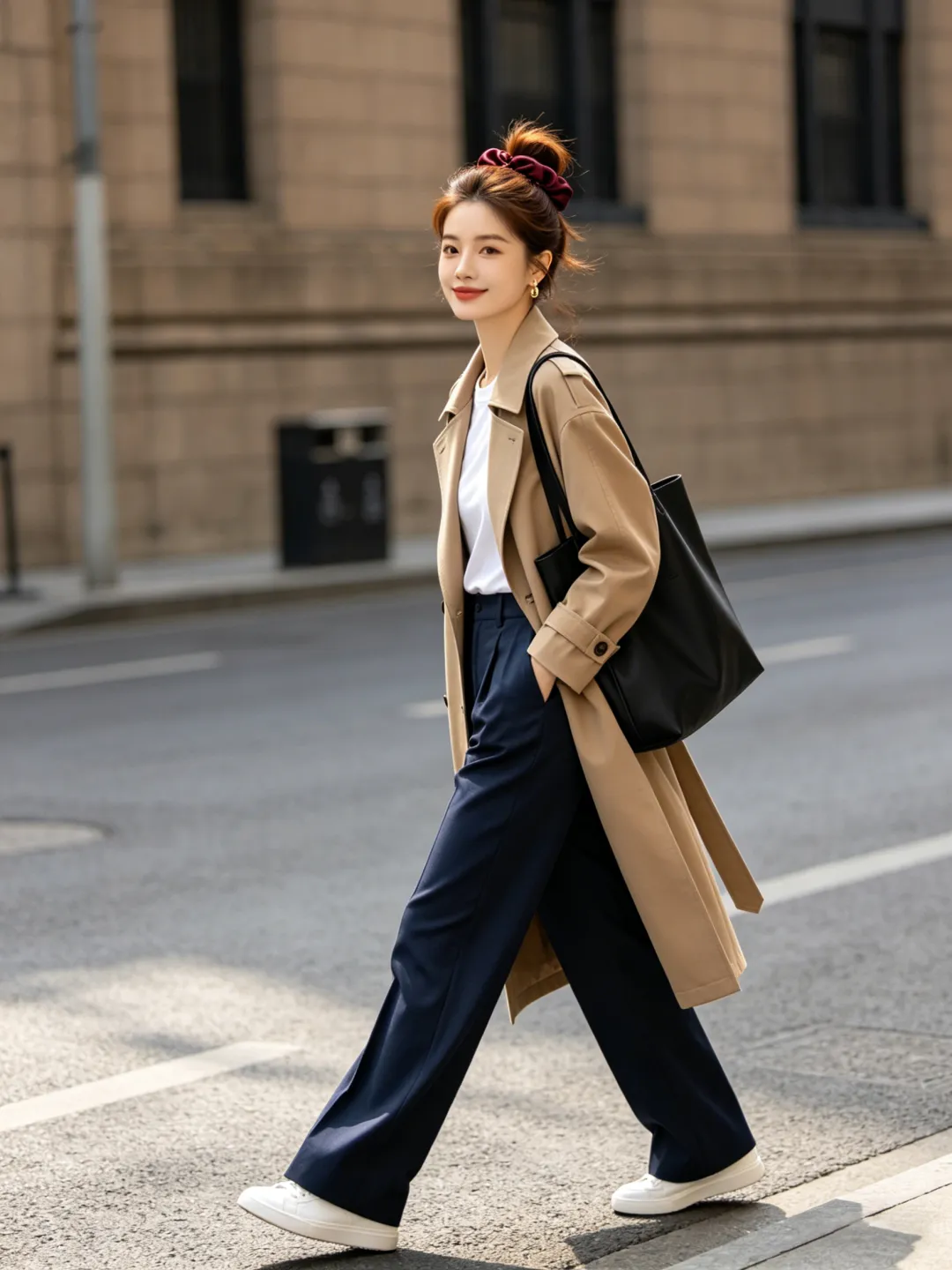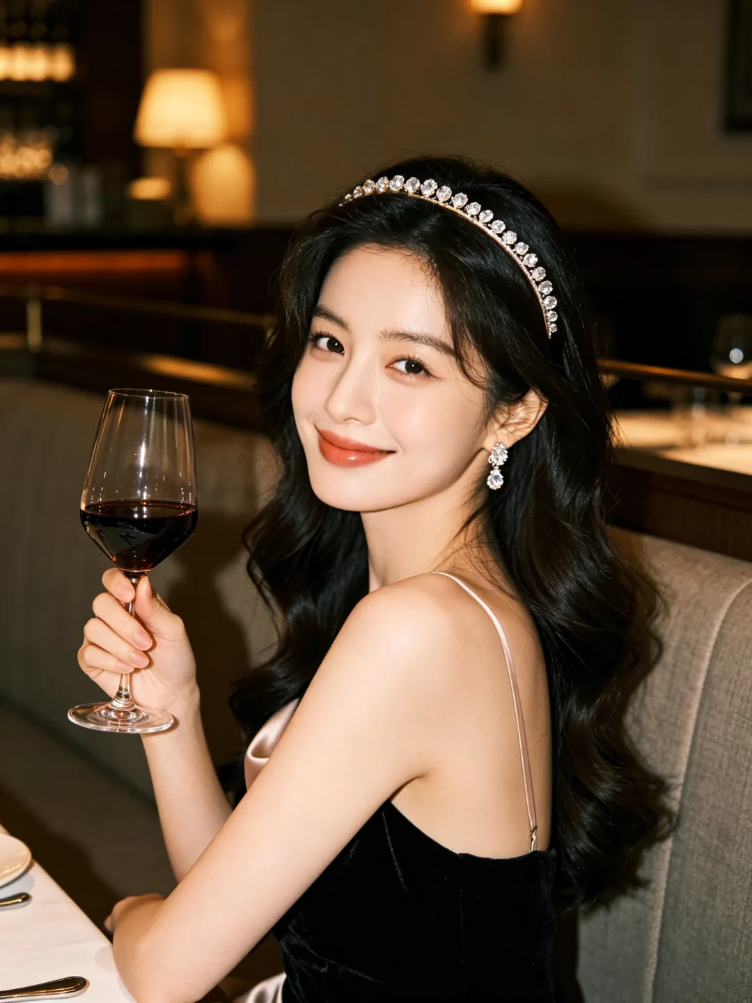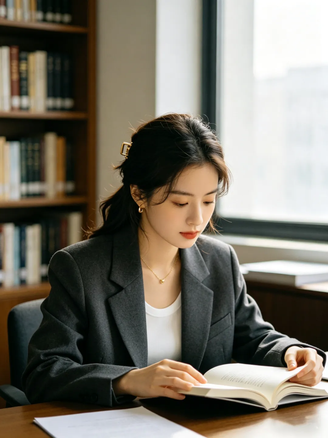 年轻东亚女性,气质温柔松弛。她坐在咖啡店窗边,侧身面向镜头,一手轻托下巴,自然微笑。发型为披肩直发,一侧头发别在耳后,露出耳朵上方的珍珠发夹——发夹为小巧的金属底座镶嵌4颗天然淡水珍珠,光泽温润,简约高级。穿搭:米白色针织开衫 + 浅蓝色直筒牛仔裤。自然光从窗户照入,光影柔和。浅景深,背景为咖啡店木质桌椅和绿植。图片比例3:4。年轻东亚女性,气质知性干练。她坐在书房或办公室的办公桌前,低头看文件或翻书,自然不经意。发型为半扎发,取上半部分头发用金属几何发夹固定——发夹为金色哑光金属,几何线条造型(方形/圆形/不规则形状),极简现代。穿搭:深灰色西装外套 + 白色圆领内搭 + 金色细项链。自然光从窗户照入,画面干净利落。构图采用半身,人物位于画面中心偏下。图片比例3:4。年轻东亚女性,气质干练优雅。她走在城市街道上,侧身回眸,自然抓拍。发型为高马尾或高丸子头,用丝绸发圈束发——发圈为酒红色真丝材质,光泽细腻。穿搭:卡其色长款风衣 + 白色T恤 + 深蓝色直筒西裤 + 白色运动鞋,肩背黑色托特包。自然光拍摄,上午光线柔和。构图采用全身,人物位于画面右侧三分线。图片比例3:4。年轻东亚女性,气质温柔甜美。她坐在下午茶餐厅或咖啡店,双手轻握咖啡杯,含笑低眸。发型为低马尾或低丸子头,在发绳处系一个缎带蝴蝶结发饰——蝴蝶结为香槟色或裸粉色丝绸缎带,大小适中(约6cm),垂下的丝带自然飘逸。穿搭:奶白色方领针织衫 + 浅咖色A字半身裙,佩戴小巧珍珠耳钉。柔和自然光,浅景深。构图采用半身,发饰位于画面上方黄金分割点。图片比例3:4。年轻东亚女性,气质慵懒松弛。她站在自家阳台或窗边,手中端着一杯水,目光望向远方。发型为盘发,用琥珀色或玳瑁色抓夹固定——抓夹为大号(约8-10cm),透明感琥珀色/玳瑁纹,复古有质感,几缕碎发自然垂落。穿搭:燕麦色宽松针织衫 + 灰色棉质休闲裤。自然光拍摄,温暖治愈。构图采用半身或七分身,人物位于画面中心。图片比例3:4。年轻东亚女性,气质精致优雅。她坐在餐厅或酒吧的卡座,侧身面向镜头,手持一杯红酒或香槟,含笑对视。发型为披肩卷发,佩戴水晶或锆石发箍——发箍为细金属底座(金色或银色),镶嵌一排透明水晶或锆石,光泽闪耀但不过分夸张。穿搭:黑色丝绒连衣裙或裸色缎面吊带裙,佩戴同系列水晶耳坠。暖黄色室内灯光,光影柔和有氛围感。构图采用半身,发饰在光线下微微闪烁。图片比例3:4。年轻东亚女性,气质文艺高雅。她站在艺术展或画廊的白墙前,侧身45度面向镜头,目光沉静。发型为低盘发髻,用法式金属发簪固定——发簪为银色的长条形(约12-15cm),簪头有简约的雕刻纹样(珍珠点缀)。穿搭:黑色高领针织衫 + 深灰色羊毛阔腿裤 + 黑色皮质托特包,佩戴银饰耳环。自然光或展馆内柔和灯光,画面干净高级。构图采用七分身,人物位于画面中心偏右。图片比例3:4。年轻东亚女性,气质浪漫松弛。她站在户外公园或花园中,侧身回眸大笑,自然抓拍。发型为侧编麻花辫或低马尾,用丝巾发带绑在发尾或缠在辫子上——丝巾为小方巾尺寸(约50x50cm),图案为法式波点/碎花/佩斯利纹样,颜色为砖红、墨绿或姜黄色,系成蝴蝶结或自然垂落。穿搭:白色棉麻衬衫裙 + 草编包 + 棕色凉鞋。阳光明媚的自然光,光影斑驳。构图采用全身或七分身,人物位于画面中心,发带随风轻飘。图片比例3:4。