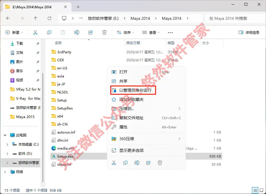 3.找到【Setup】运行程序,鼠标右键选择【以管理员身份运行】