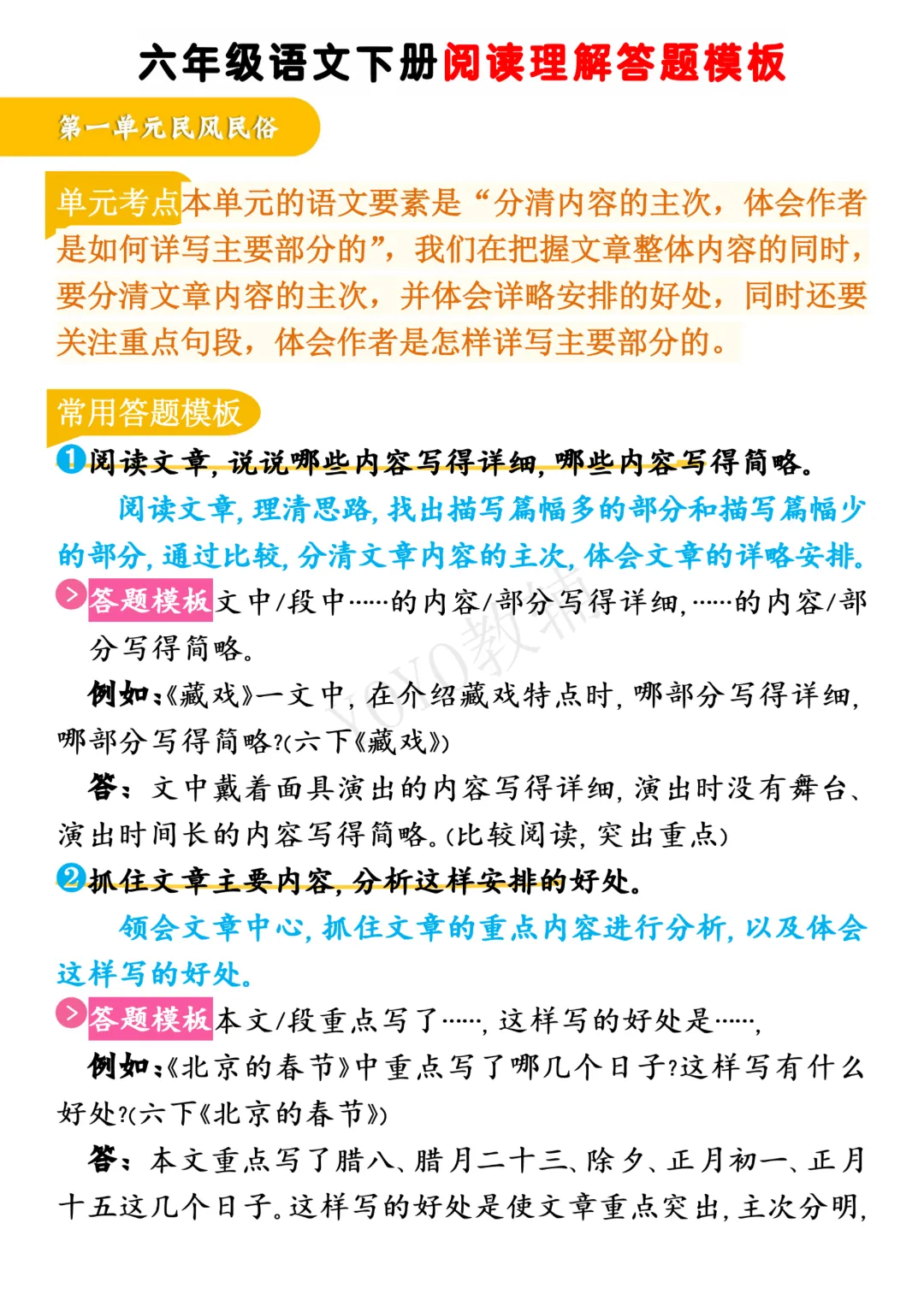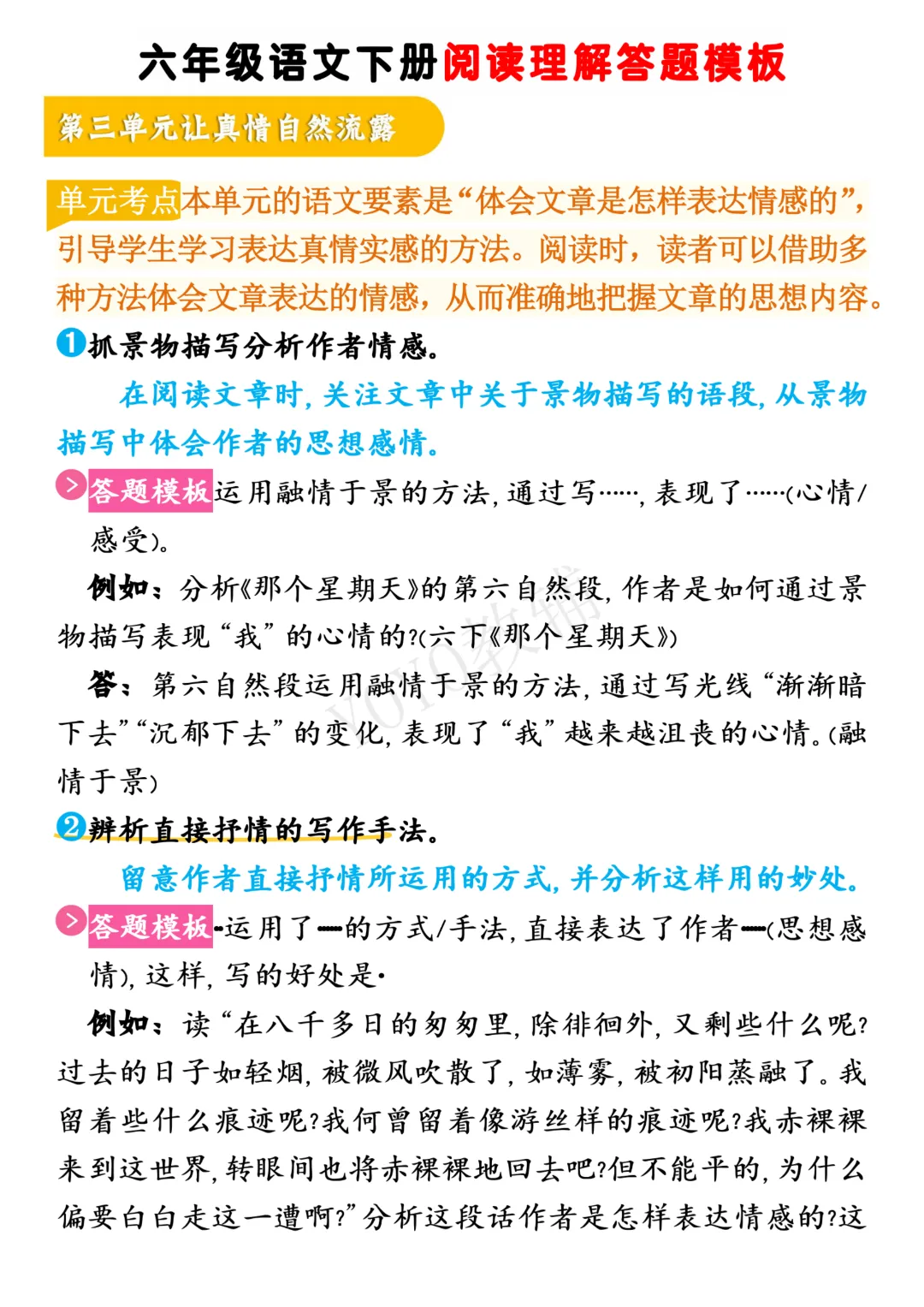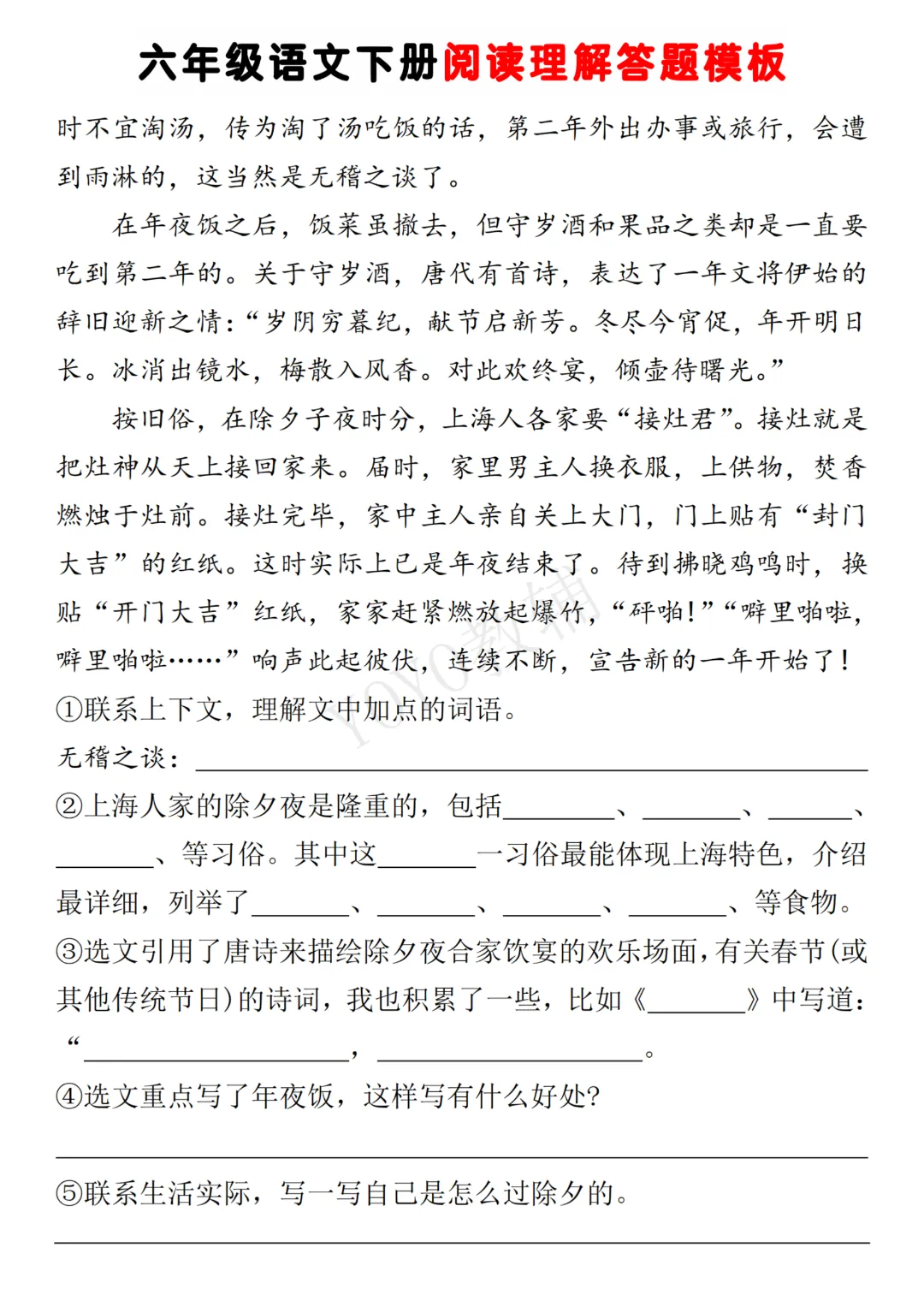 26春《六年级语文下册阅读理解答题模板》高清电子版可打印。需要的家长可以领取打印出来~