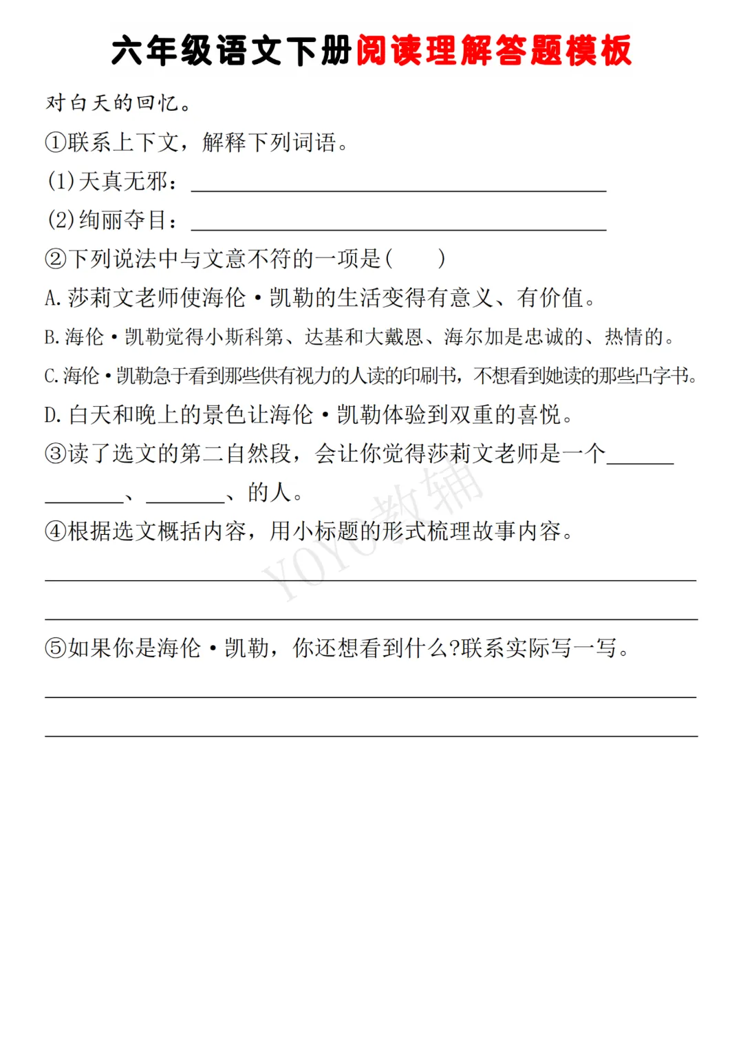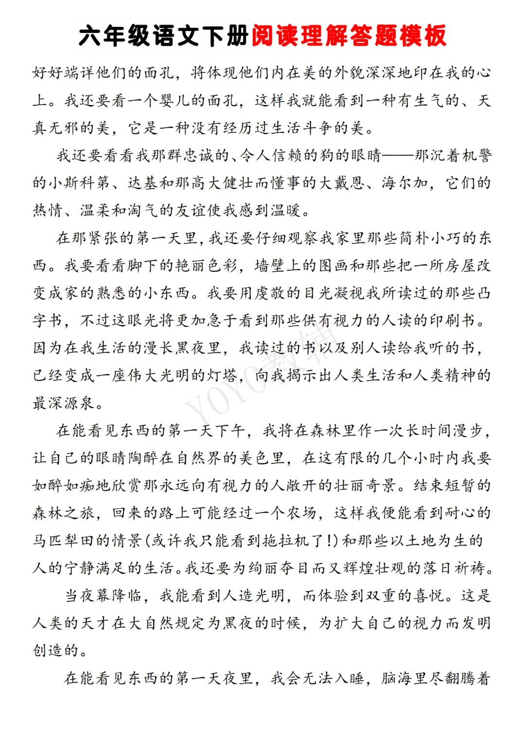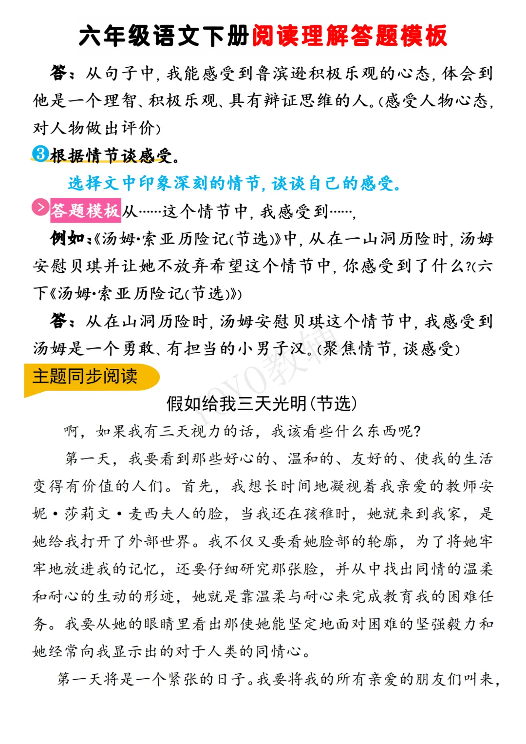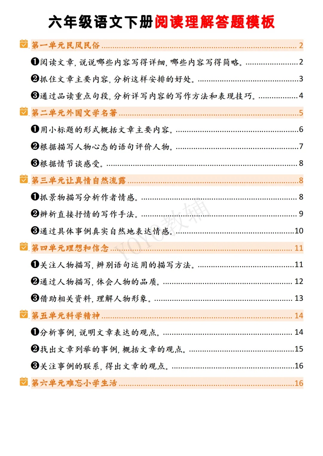 26春《六年级语文下册阅读理解答题模板》高清电子版可打印。需要的家长可以领取打印出来~