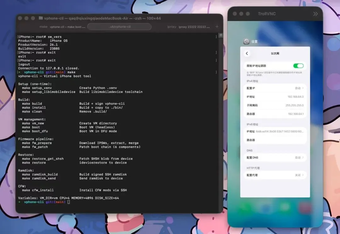 同日,Lakr233 发布vphone-cli,将整套流程自动化封装,降低了使用门槛。