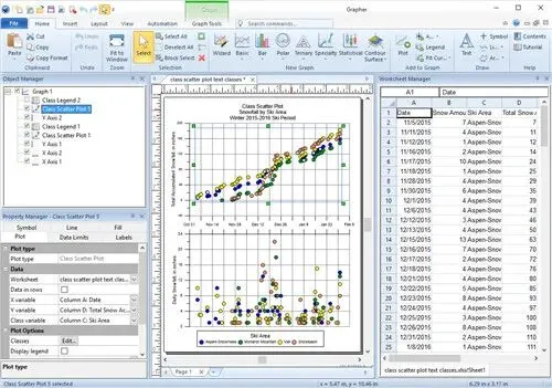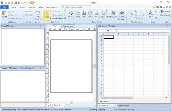 七、【简化的工作流程】在几分钟内启动并运行。Grapher 的用户界面旨在消除学习新程序时的猜测。我们努力简化工作流程,因此您不必这样做。Grapher 用户界面功能如下:1、查看、编辑和操作数据和图表的单一窗口2、对象管理器可轻松管理图形、轴和其他对象3、属性管理器可轻松访问地块属性4、工作表窗口可快速查看或编辑原始数据5、停靠或浮动所有管理器6、自定义功能区栏布局7、欢迎对话框让您开始8、图形向导指导您完成图形创建过程9、自定义用户界面以满足您的需求