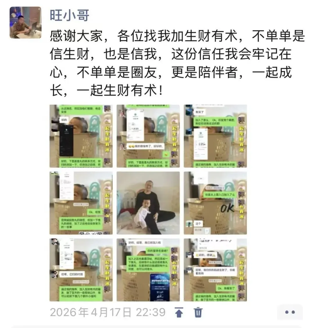 【最后一期,免费参与】生财有术最后一期Ai实操体验营,明天开始,聊聊我为什么力推生财有术9年来,我每年都会在4月份生财有术周年庆的时候,给身边朋友们大力推荐生财有术因为这是我的互联网启蒙圈子,因为这个圈子,才让我这个被职场抛弃的人在互联网上找到我的活法贵人,是8年前推荐我加入生财有术的一碗梁粉老师(也是我在深圳第一次创业的合伙人),贵圈,就是生财有术这个圈子(下面视频录制于6年前)没有当时梁老师的大力推荐,我不可能知道这个圈子;不进入这个圈子,我也不可能看到更大的世界,找到我的活法每次和老婆下楼遛娃,同样遛娃的几乎都是爷爷奶奶辈的昨天,有一位抱着小孩的长辈和我们搭话说:“小伙子,每天都看你俩遛娃,爷爷奶奶不帮忙吗?你们不上班挣钱吗?小孩开销这么大,不挣钱怎么行?”我回复说:“小孩爷爷奶奶在村里呢,身体不太好,也帮不了忙”但还有后半部分,我没有跟对方说:“我们俩不用上班,收入也要比去上班高很多”后面这部分,才是我们俩可以安心带娃不考虑上班的真正原因8年前,我找不到工作,加入生财有术,知道了打工是为了挣钱,但挣钱的路子并不只有打工,让我当时不再迷茫;7年前我去了深圳,在深圳半年副业状态,1年自由职业状态,5年半创业状态,期间频繁刷生财有术,在里边解决问题,让我磨出了在网上生存的能力;感兴趣可以看我在深圳的6年回忆录,记录了我在深圳6年的快乐和痛苦,这里不展开聊了回到老家,我又狂刷生财有术,和在生财有术认识的朋友们合作,找到了自己用碎片化时间获取收入的一些方式;这就是我的生活态度:不抱怨不可改变的因素,不强行改变生活状态,从自己可控的环节里,找自己的活法比如我讲话沟通费劲,听东西费劲,这是不可改变的因素,我就减少线下社交,多花时间线上社交,多和大家语音,电话,视频交流再比如现在小孩每天要出门遛,我老婆一个人带会很累,每天和我老婆一起遛娃陪娃的状态是生活状态,我不去强行改变这个状态,而是想办法利用好自己可控的时间:遛娃时娃睡觉的间隙,在家里娃比较安静的时间,晚上娃睡着后,早上娃醒之前....在这些时间里,能学习就学习,能做点事儿,就做点事儿(前天刚学会了obsidian+claude,后续预计能帮我提高至少1倍写文章的效率)这些年几乎所有的信息,帮我获得能力,认知提高的源头,都离不开生财有术这个圈子简单一句话,就是带大家找适合自己的方向,一起做项目实操,创造氛围鼓励大家互相链接,互相合作的一个综合性的创业圈子,具体可看3分钟看懂生财有术社群因为几乎没有人做项目可以百发百中,都是在做多个项目的过程中提高了自己的能力和网感,然后碰到了自己正好能hold住的项目方向,去年,有很多人找我打广告,让我帮它发朋友圈,帮他发文章,只要发,就能立刻拿到广告费,这钱,我没拿但推荐大家加入生财,大家会感谢我,就像当年梁老师推荐我加生财,我到现在还心存感激一样不给大家藏着掖着,生财有术没给我广告费,如果大家加入后,生财会给我几百块的种草奖励,这是我在家带娃期间的4大主要收入来源之一但这钱,我不会白拿,所有在我的推荐下加入生财的圈友,我都给到我自己专属的力所能及的帮扶,帮你一起快速成长进步!如果你还不太了解这个社群,送你一张免费体验卡,通过下面四步,去感受感受并且下周还有最后一场Ai体验营,会拉群,除了深入介绍生财有术之外,还会带大家一块去实操几个Ai的小工具,跑个小闭环,实操下Ai+项目落地的过程记得加我:11301978,朋友圈有一些近期和圈友交流的记录可帮大家全面了解生财,体验之后如果觉得还可以,欢迎找我加生财,加入后,我立刻安排我这额外的几个帮扶我是旺小哥,身上有些小阻碍,听声音困难,发音费劲,肌肉障碍,社交艰难,妥妥的一个生存困难又很容易被边缘化的普通小人物,