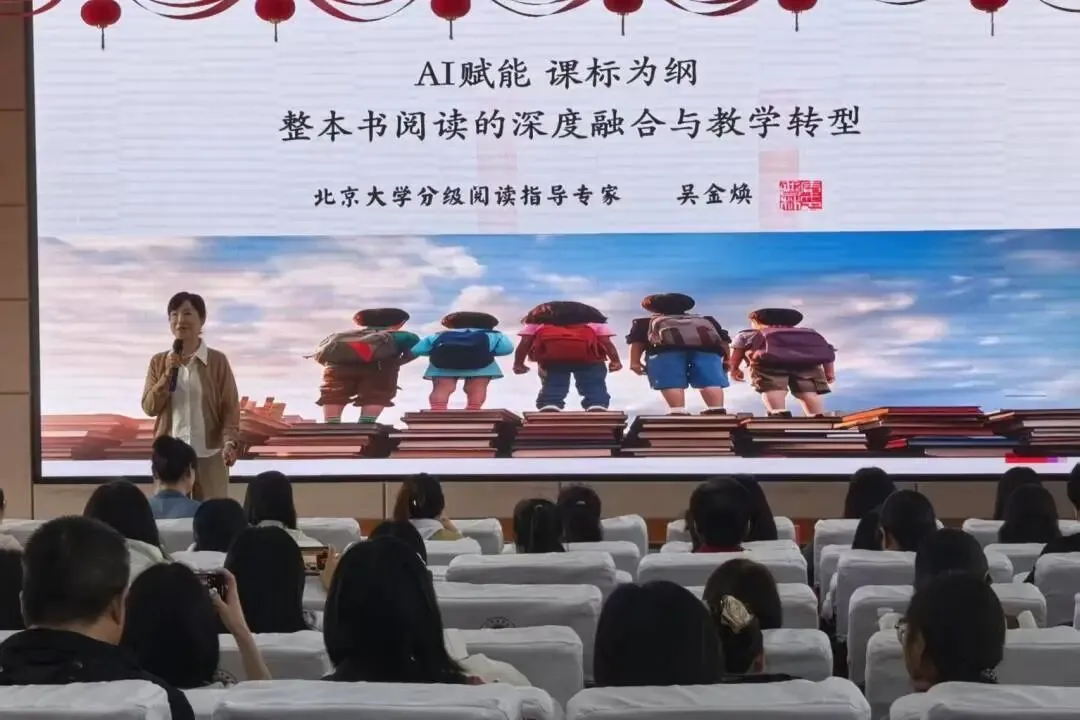 北京大学分级阅读指导专家吴金焕作专题讲座《AI赋能 课标为纲:整本书阅读的深度融合与教学转型》。